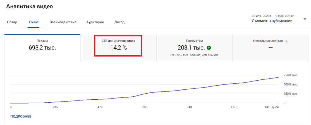 Первый важный показатель — CTR (кликабельность вашего видео).