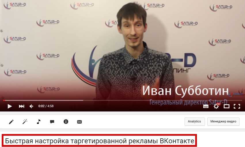 Вот например, мое видео “быстрая настройка таргетированной рекламы вконтакте”, состоит из 5 слов, но только 4 из них являются ключевыми словами: