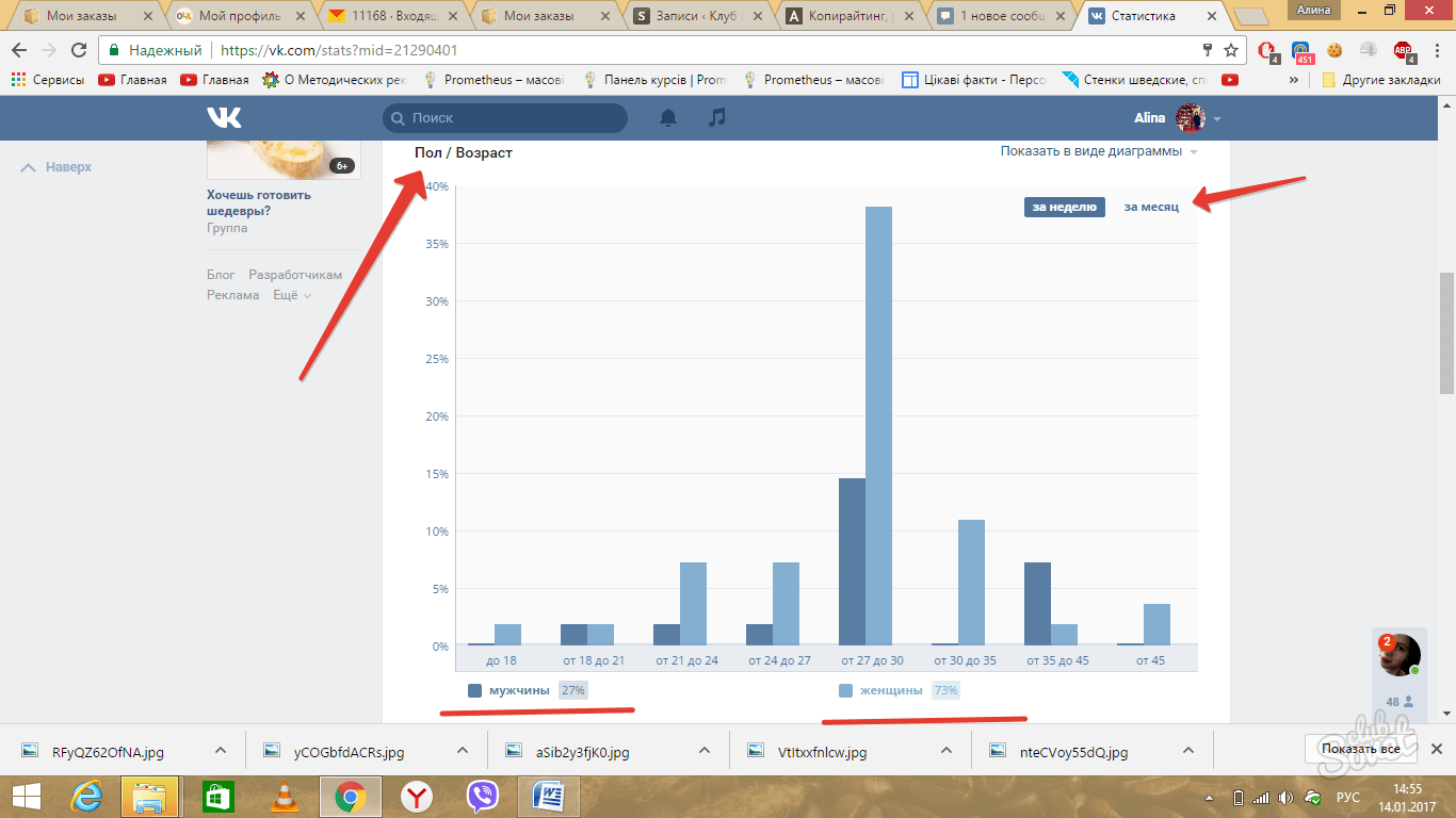 Охват аудитории – статистика тех, кто увидел ваши записи в новостной ленте. Здесь учитывается возраст, пол и страну пребывания тех, кто интересуется вами.