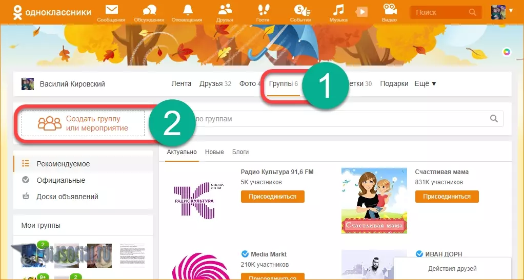 Для создания группы, вам также необходима личная страница в Одноклассниках. Шаг 1: