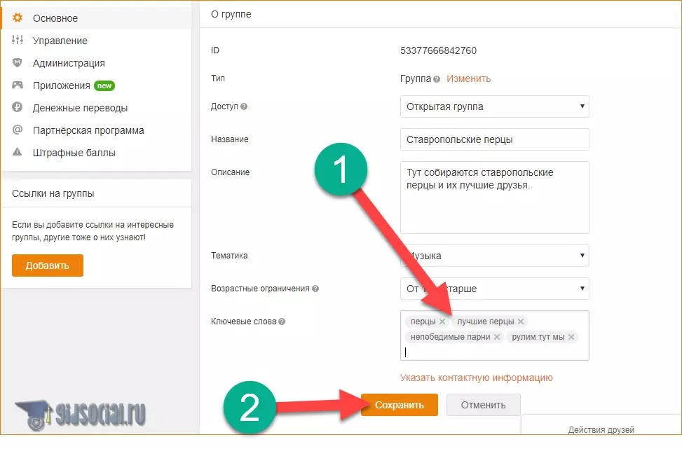 Теперь очень важный момент – нам нужно добавить поисковые фразы, которые привлекут пользователей. Переходим в дополнительные настройки и прописываем ключи через запятую.