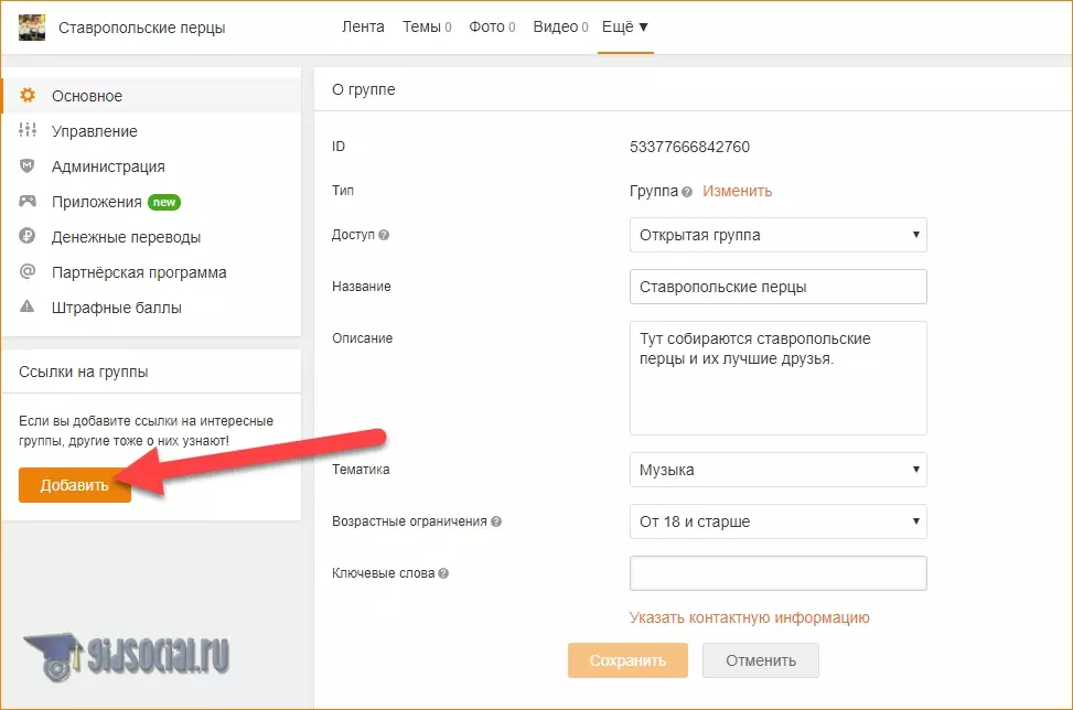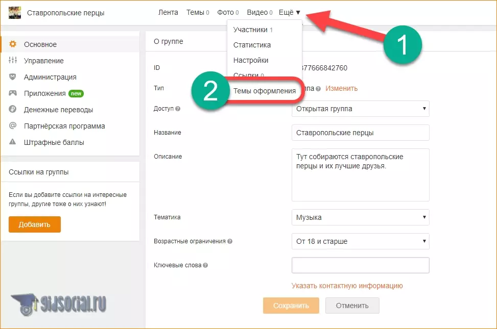 Рис. 44.9. Настройки группы в Одноклассниках.