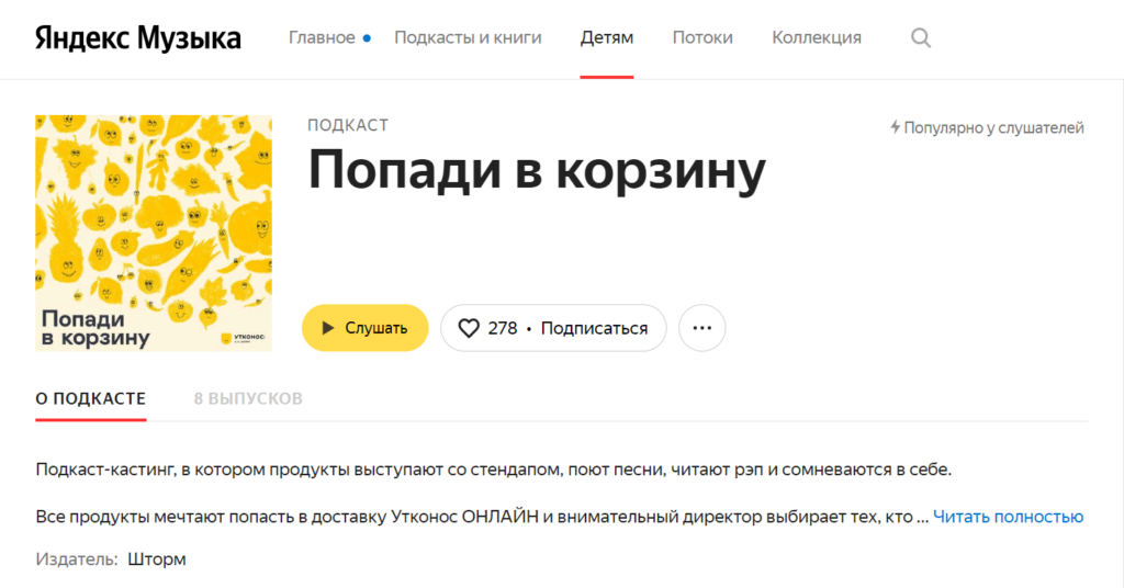 Результат. Подкаст нацеливался на детей и семьи, всего привлек больше 1000 пользователей. Средний показатель дослушивания у него 50-70%.