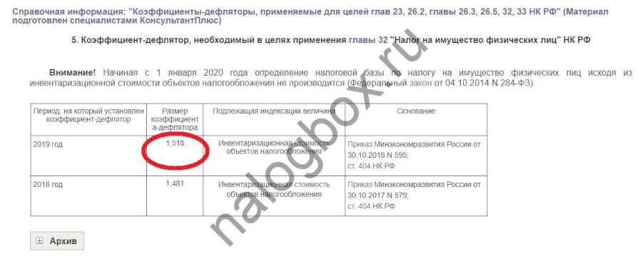 Коэффициент-дефлятор в 2019 году равен 1,518.