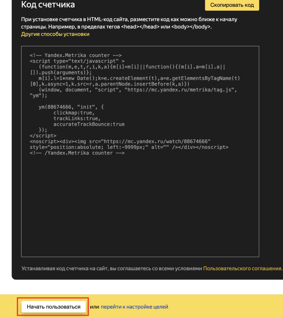 Соглашаемся с условиями Пользовательского соглашения и нажимаем Создать счетчик.