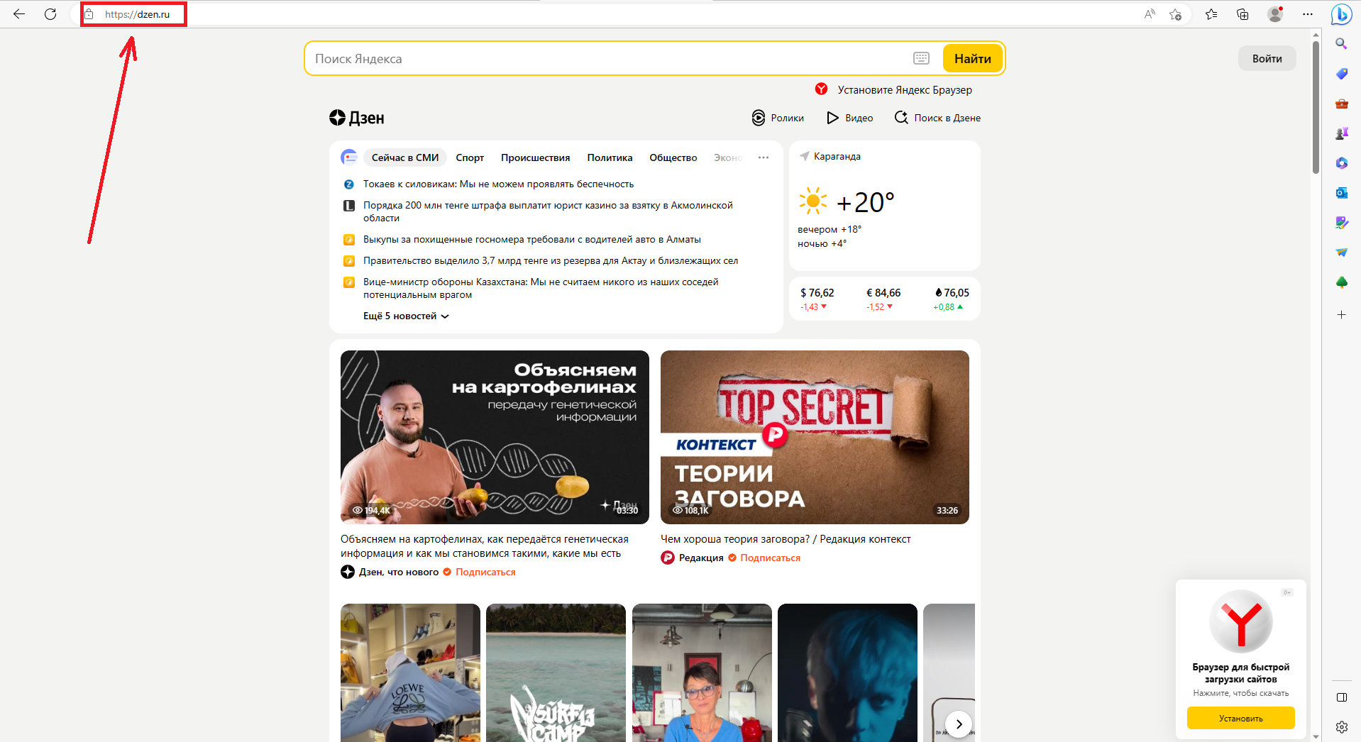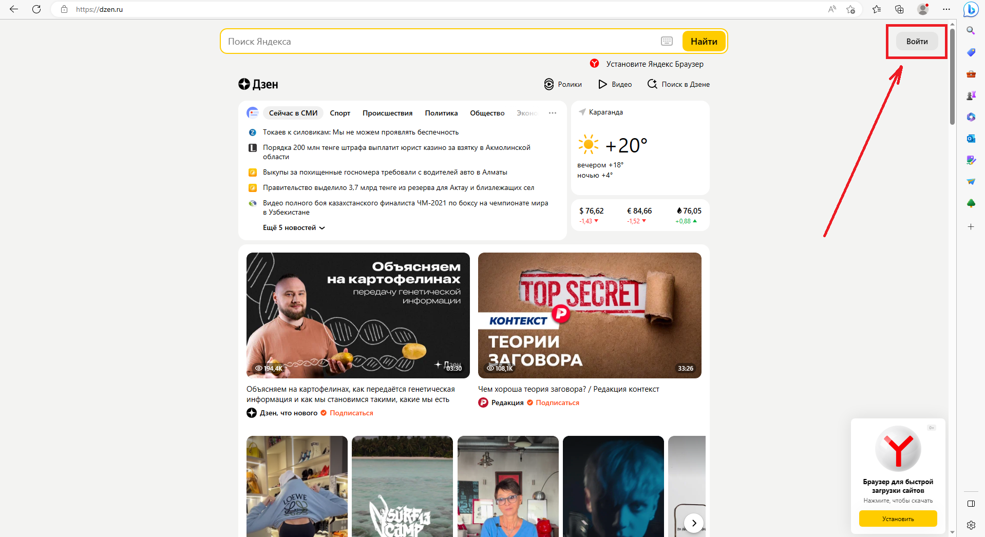 клики по карточкам в Дзене;