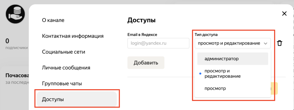 Если вы хотите вести канал в Дзене совместно с другими пользователями, то вам как владельцу канала необходимо предоставить доступы для работы. Для этого в настройках укажите электронную почту пользователя и выберите тип доступа (администратор, просмотр и редактирование, просмотр).