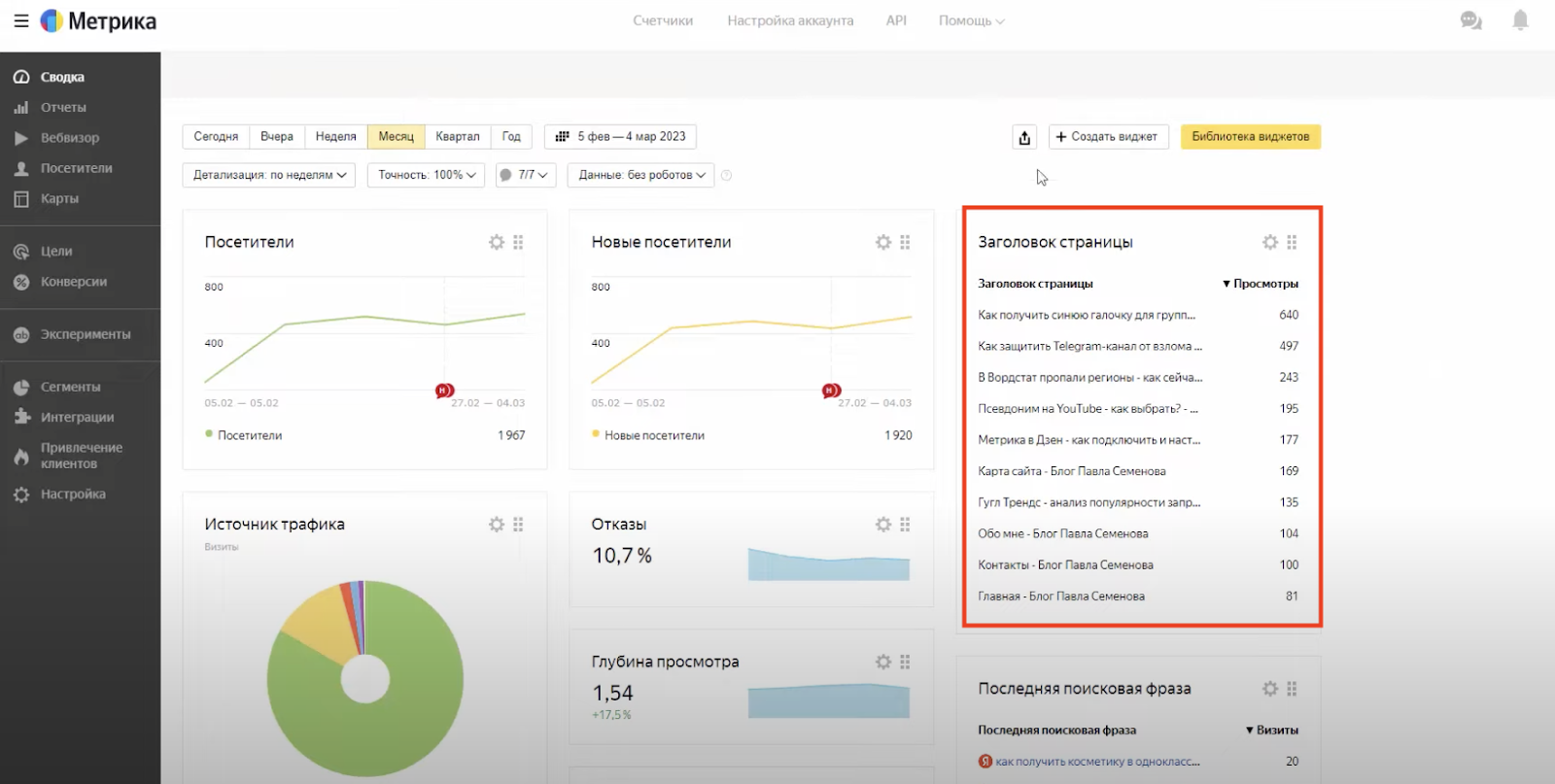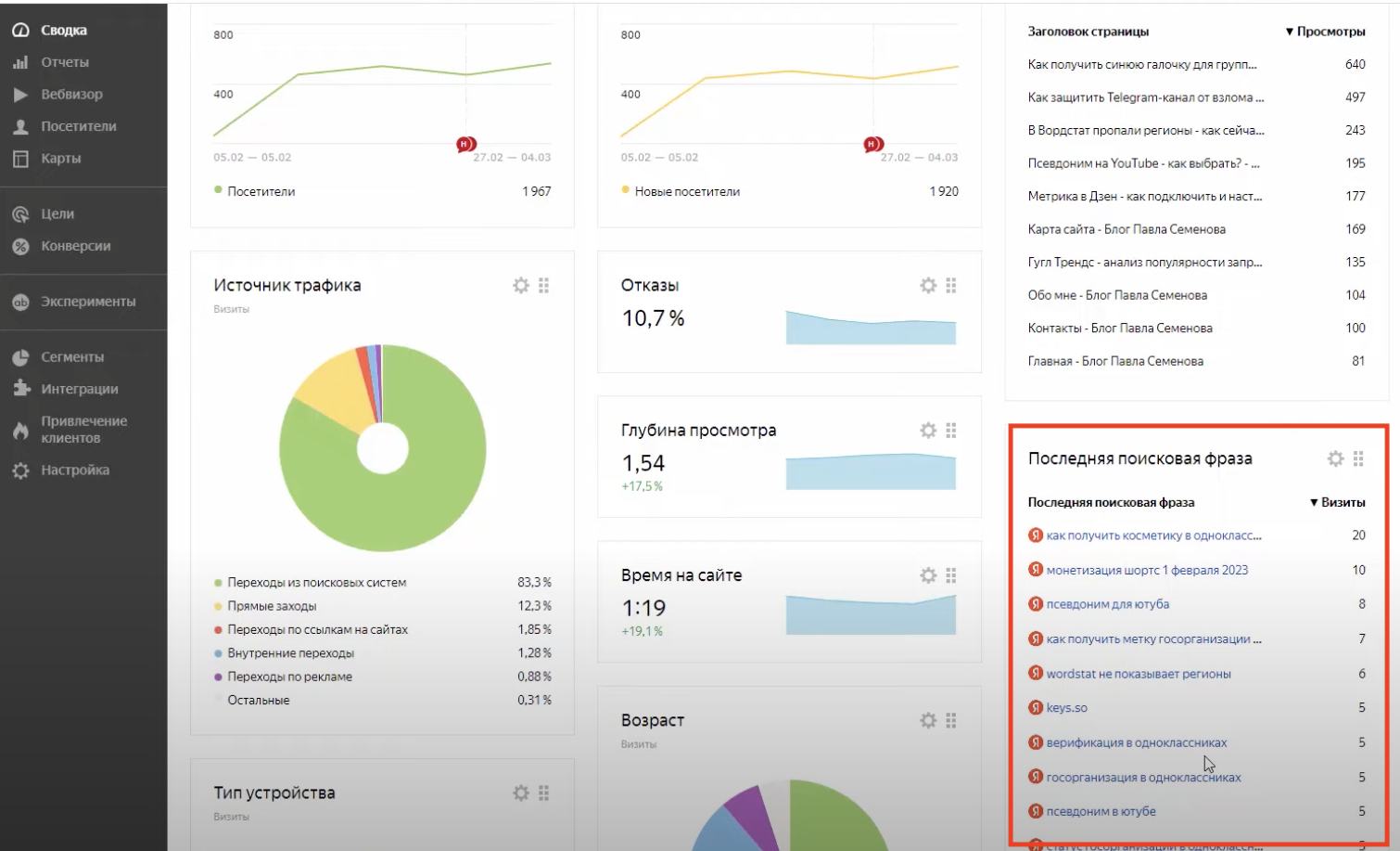 Чтобы понять, какую аудиторию привлекает ваш блог, следите за отчетами метрики. Они помогают сегментировать данные о читателях по ГЕО, демографии, устройствах, времени, количеству посещений и др. Эта информация поможет понять, какие темы и форматы более интересны вашей целевой аудитории.