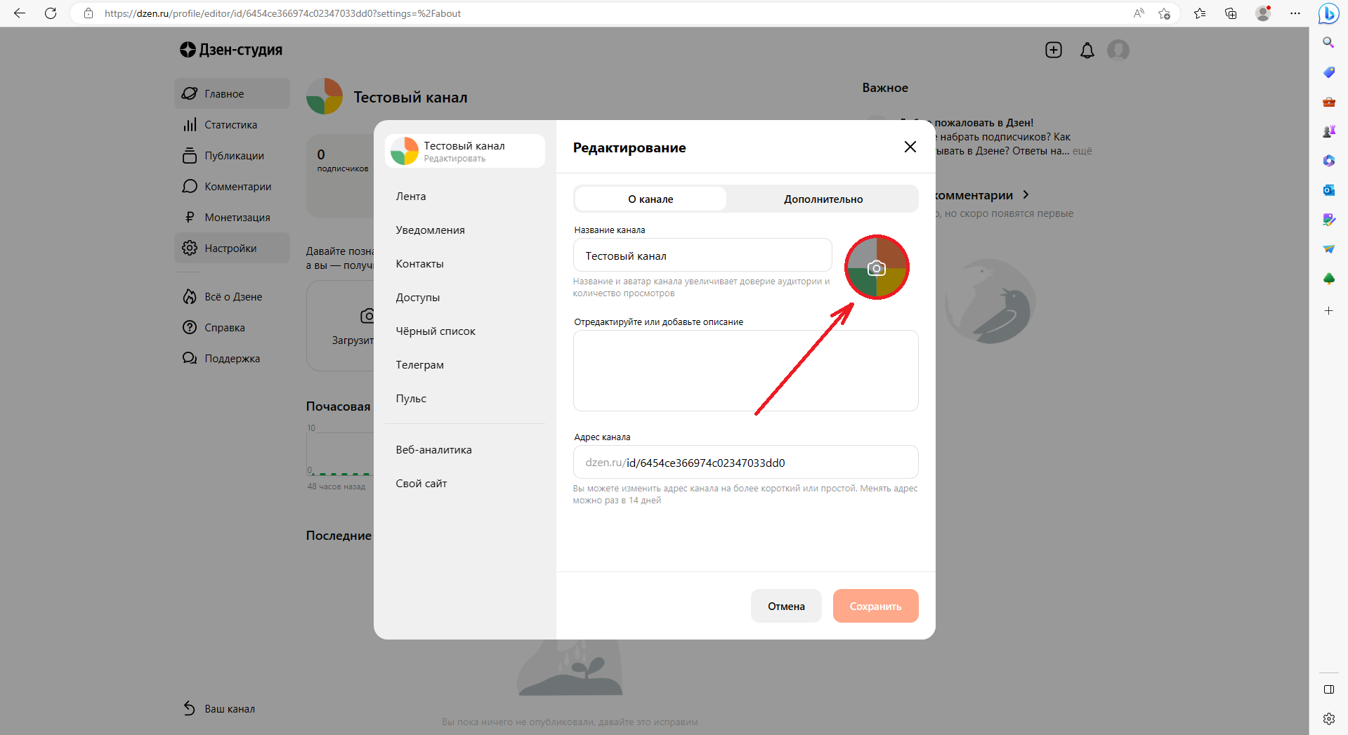 Настройка канала в Дзен