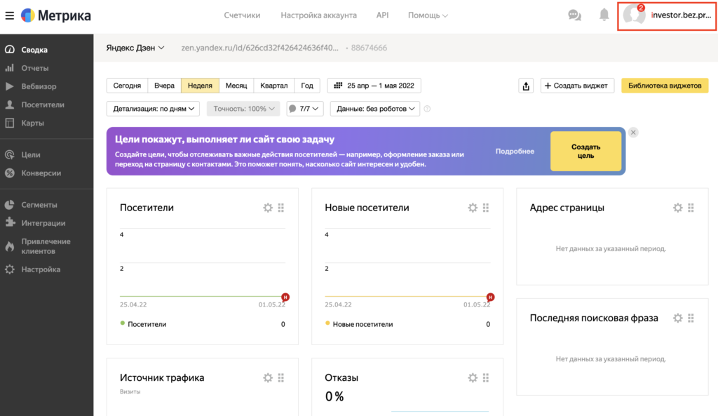 Мы подключили Метрику к каналу Дзен.
