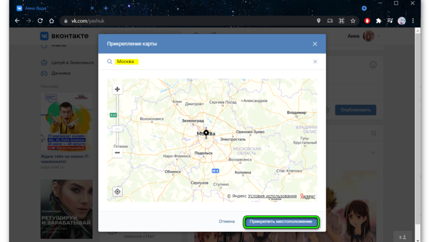 Интересный инструмент позволяет добавить интерактивную карту к посту. В окне настроек карты выбираете свое местоположение, или вашего физического магазина, если вы продаете какие-то товары. И далее пользователь, открыв карту может подробно увидеть название улицы и подъездные пути, как к вам добраться. Карта масштабируется. По умолчанию в ВК используются Яндекс.Карты.