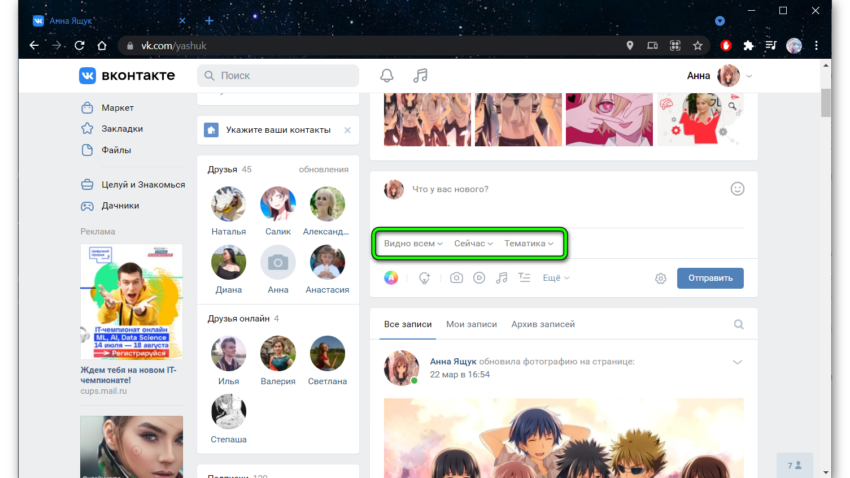 Чтобы опубликовать новый пост, потребуется нажать на указанный символ и следовать инструкциям. Предложенный пользователям функционал предельно прост, поэтому его использование не вызовет затруднений. В крайнем случае, рекомендуется ориентироваться на многочисленные надписи, поясняющие каждую функцию.