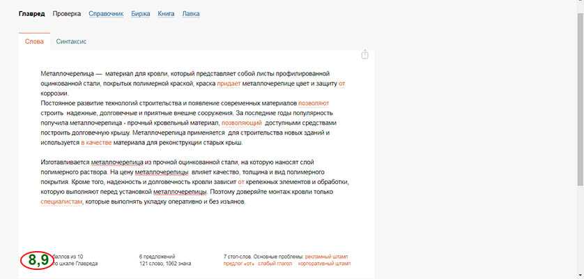 После проверки сервис выставляет тексту оценку по десятибалльной шкале, чем выше балл – тем меньше в нём пустых неинформативных слов.