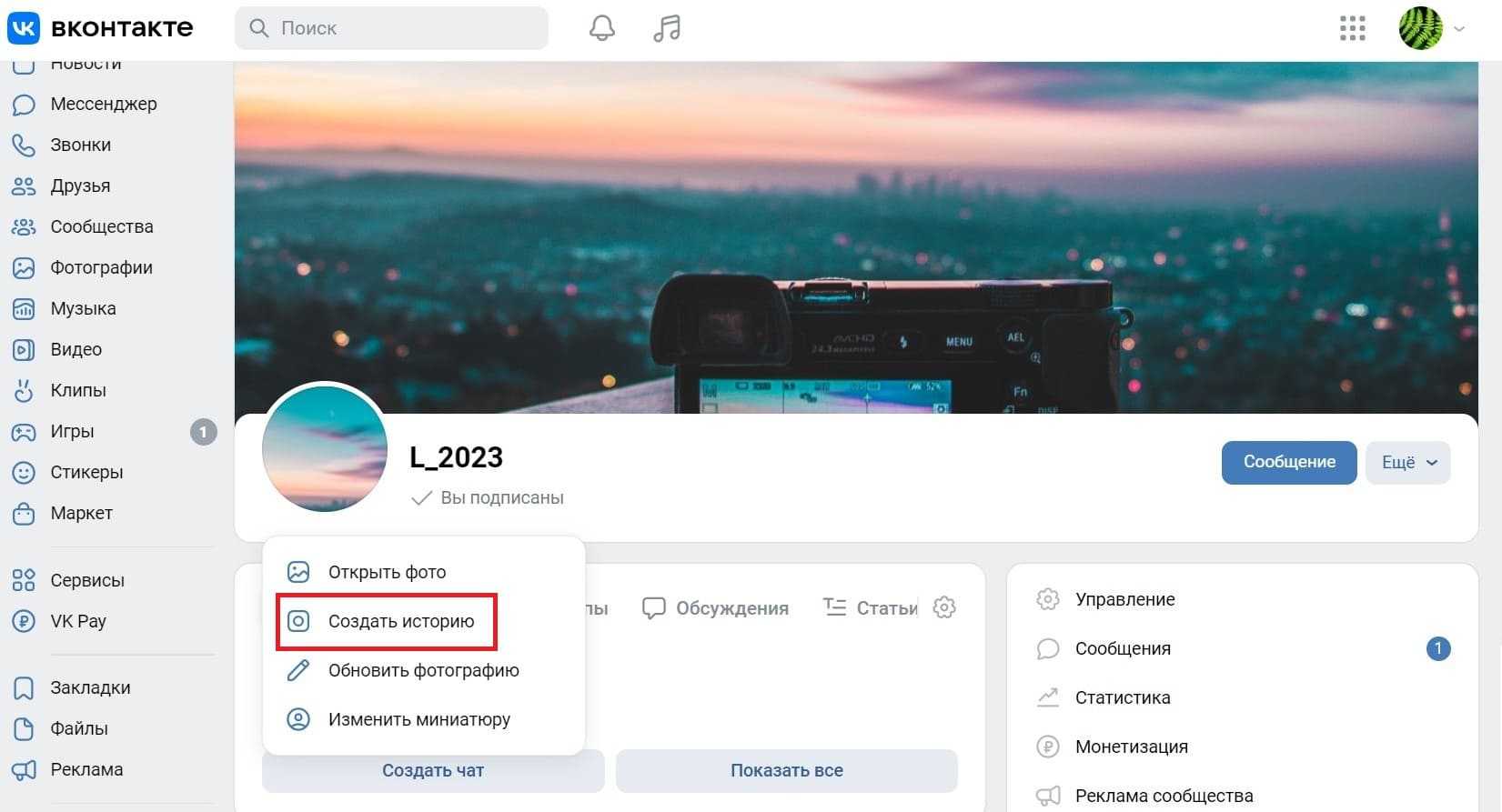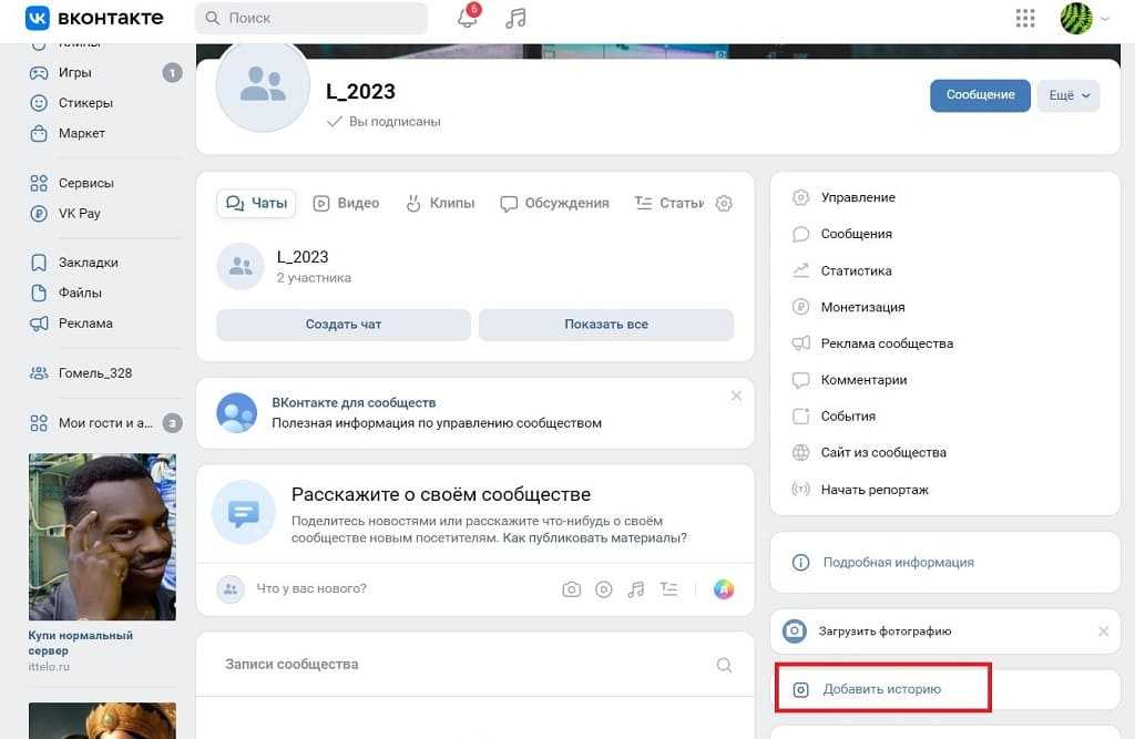- зайти в администрируемое сообщество;