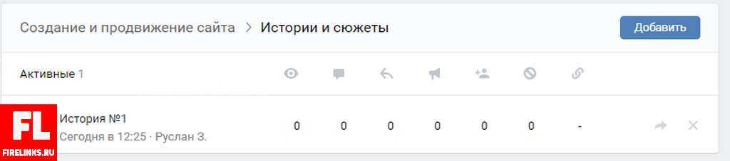 - В правом сайдбаре, под основным меню, нажимаем на кнопку «добавить историю»;