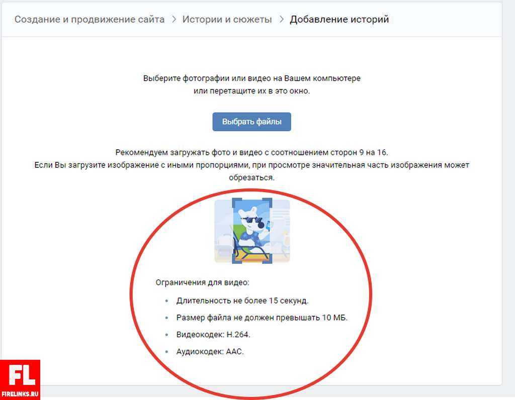 Последним шагом при добавлении истории с компьютера Вам необходимо нажать на кнопку «Выбрать файлы» и залить фото или видео.