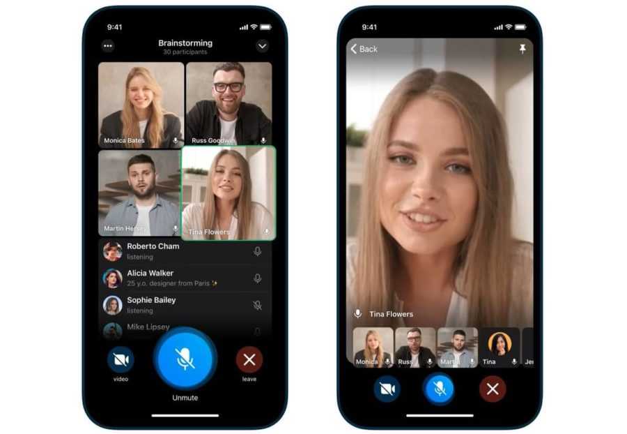 Реализована в Telegram и система проведения совместных трансляций с помощью приглашенных спикеров (не более 30 участников). Кого сделать соведущим решают непосредственно владельцы или администраторы каналов и групп: достаточно в списке со слушателями/зрителями выбрать понравившегося участника, а после – в появившемся меню – нажать на кнопку «Включить микрофон».