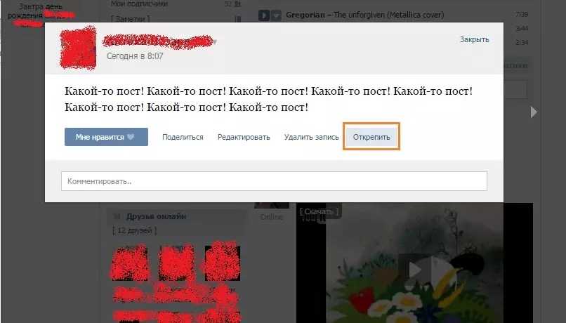 Все гениальное просто, не так ли? Чтобы снова открепить пост, проделайте аналогичные действия, только вместо кнопки «Закрепить