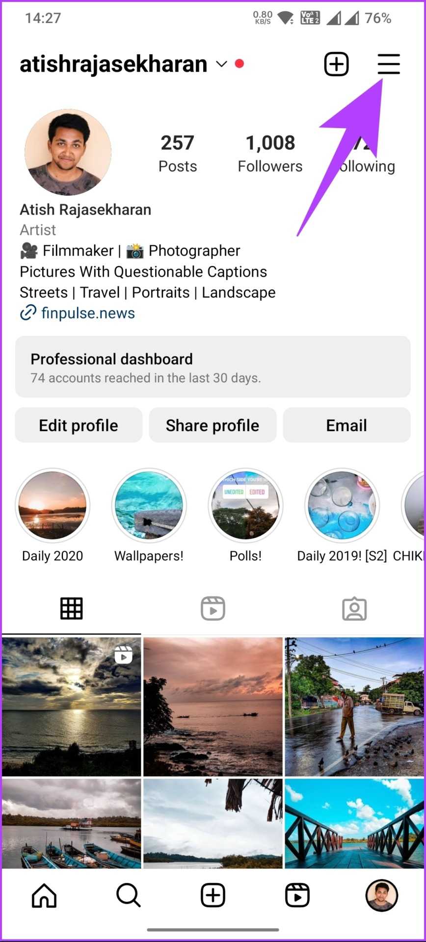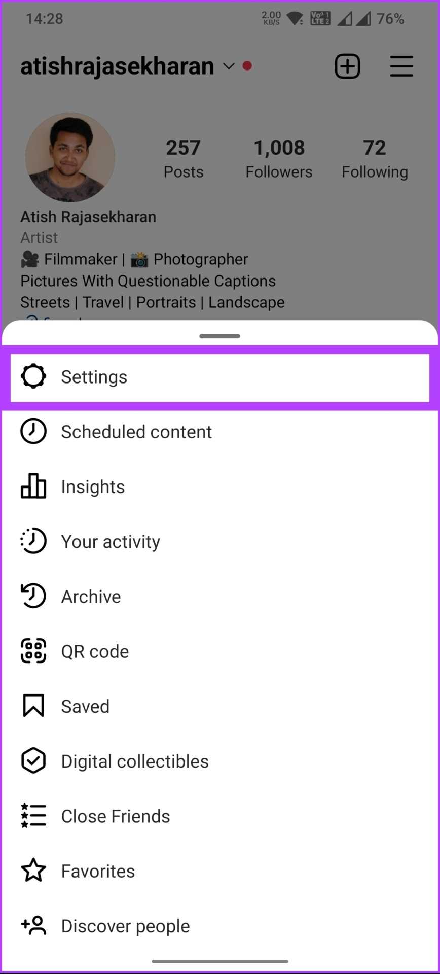 Шаг 3: в профиле коснитесь гамбургер-меню и выберите «Настройки».