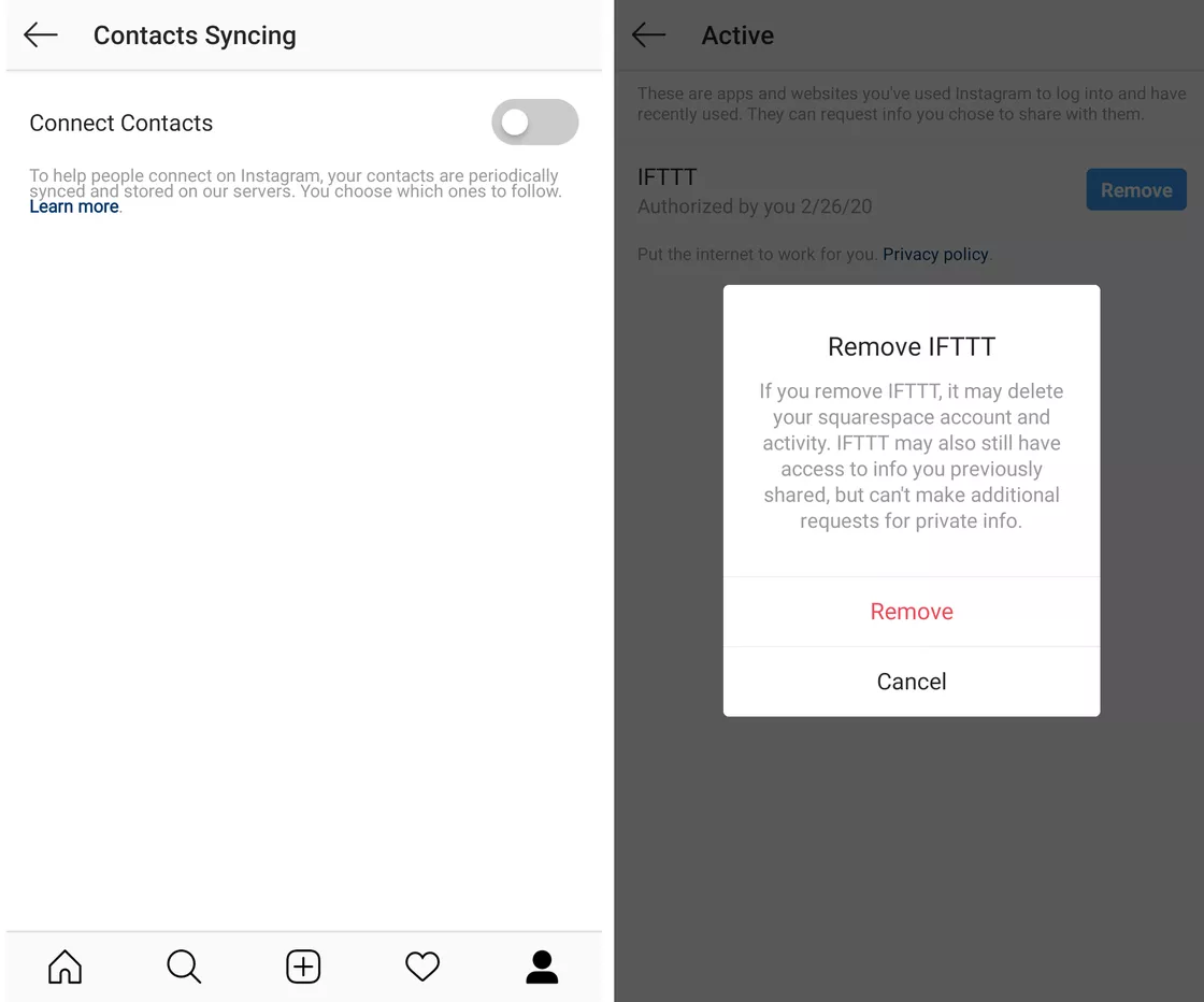 Если один или несколько ваших постов все-таки отображаются в поиске, необходимо запретить сторонним приложениям получать доступ к вашему аккаунту. Вы можете сделать это, открыв мобильное приложение: