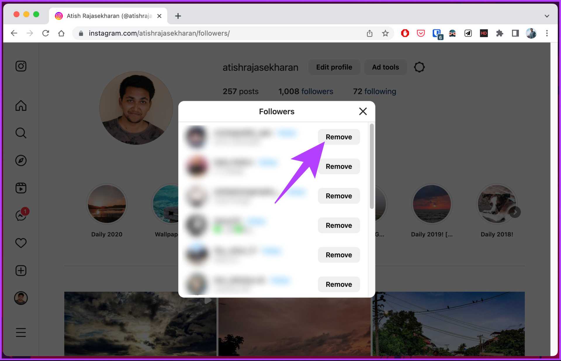 Теперь, когда вы сделали свою учетную запись приватной, пришло время удалить пользователей, которым вы не хотите видеть свои публикации, ролики или истории.