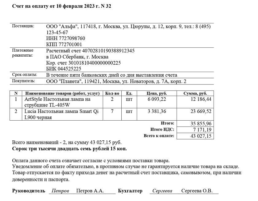 - Правильное заполнение и наличие всех обязательных характеристик в счете на предоплату является важным условием для заключения договора и обеспечения безопасности финансовой операции. В случае несоблюдения этих требований документ может быть признан недействительным или послужить основанием для возникновения юридических проблем.
