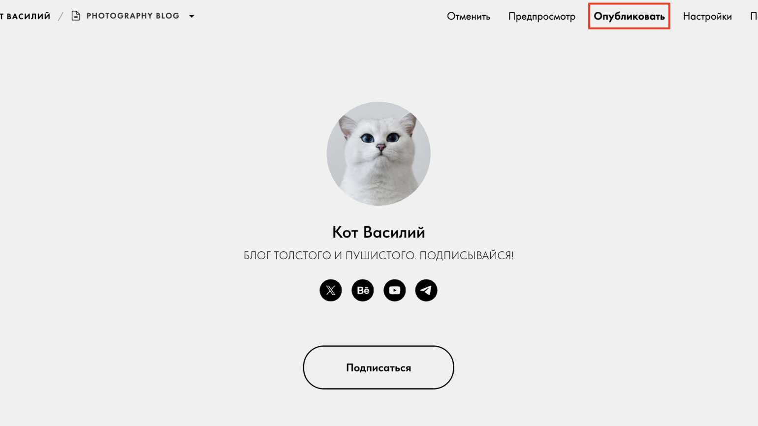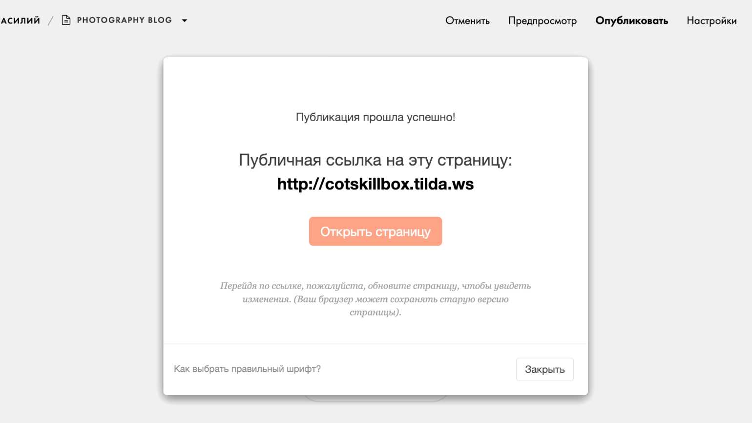 После того как вы завершили работу над сайтом, нажмите Опубликовать.