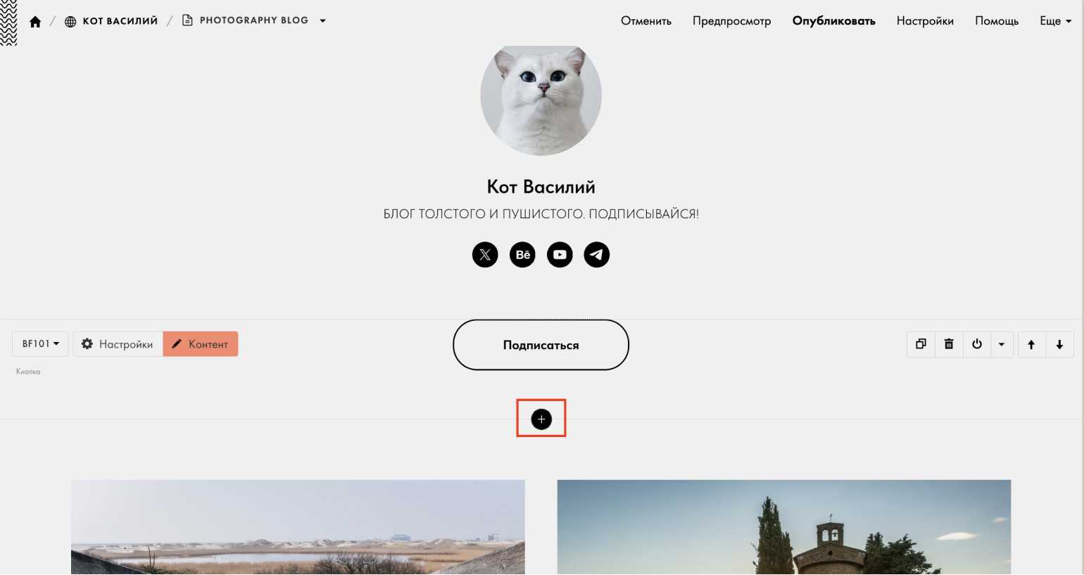 Кликните на нужный блок для его выбора. Он добавится на странице.
