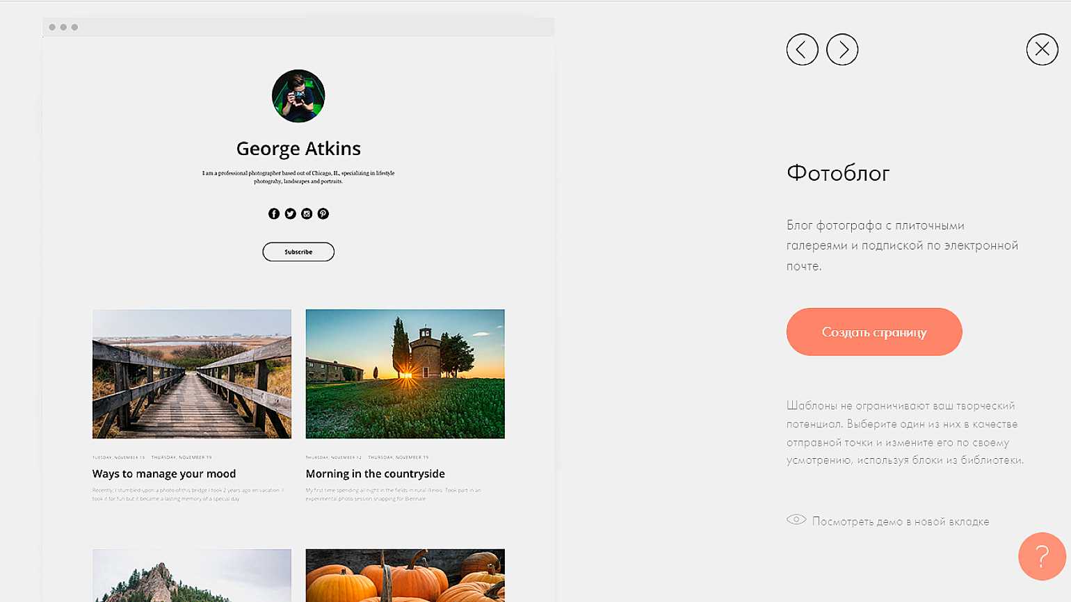Создадим фотоблог. Для этого выберите одноимённый шаблон: