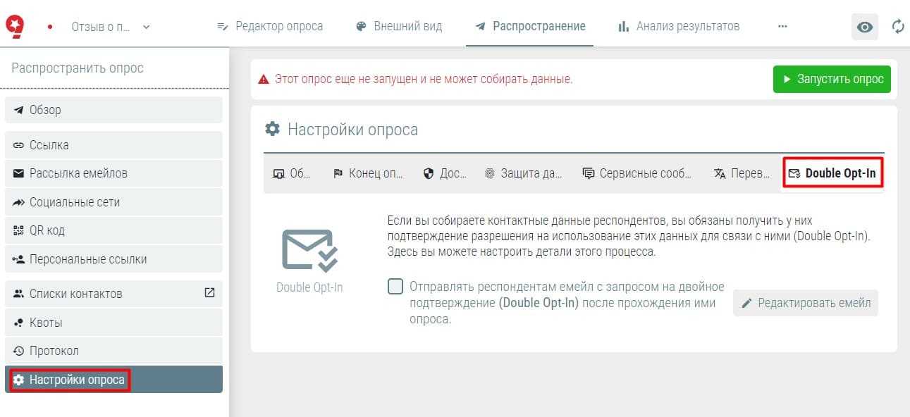 Double Opt-In – настройка процесса подтверждения согласия на использование персональных данных респондентов.