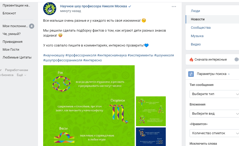Попав в группу или паблик, они могут быстро посмотреть ваши публикации по интересующим их темам.