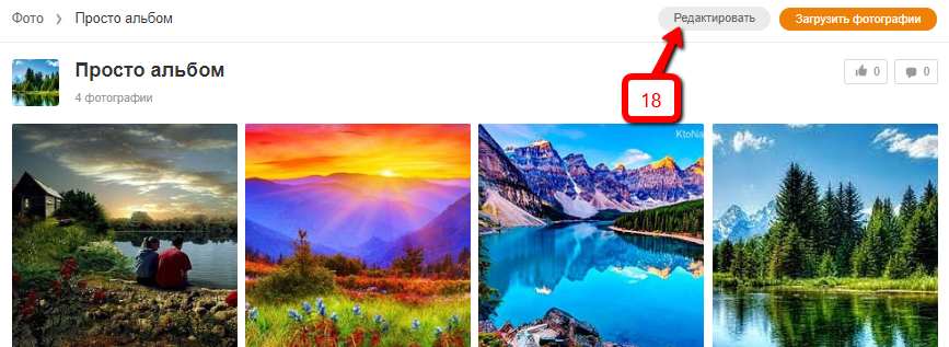Внутри альбома нажмите на кнопку «Редактировать» (18):