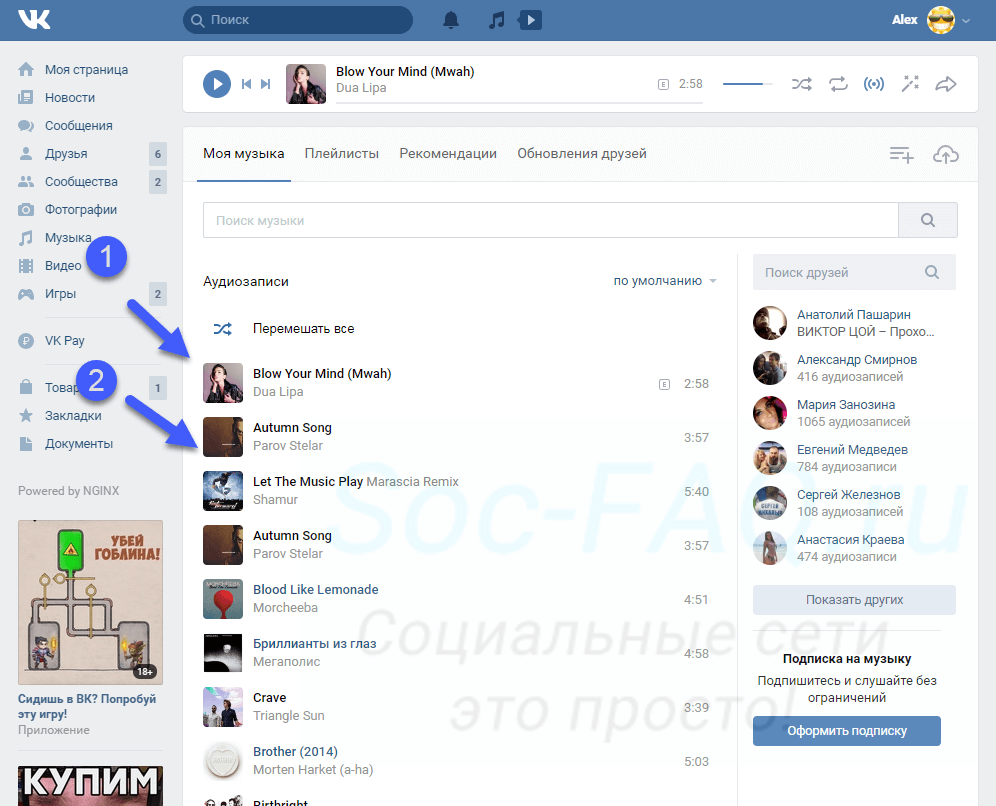 Отсюда вытекает следующая мысль – вы можете скрыть свои аудио, ограничив круг лиц, которые смогут их видеть, или вообще сделать их заметными только для самого себя. Но обо всем по порядку, и начнем нашу пошаговую инструкцию с поиска аудиозаписей друзей ВКонтакте.