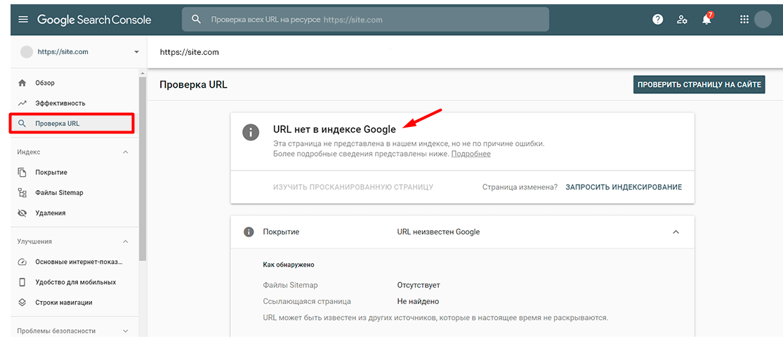 Как проверить статус страницы в Google Search Console