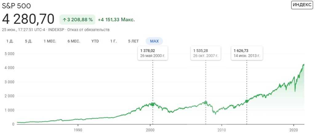 Важно понимать, что в этот период росло практически все. В этом нет заслуги инвесторов, единственное что нужно было делать — это купить и держать акции