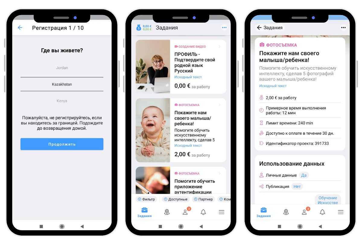 При регистрации надо выбрать язык, на котором вы хотите получать задания. Также надо подтвердить, исполнилось ли вам 18 лет — документы при этом не нужны, разработчики верят на слово. Если нажать на «да», вам могут попадаться задания из категории 18+. Таким образом можно зарабатывать, например, на просмотре эротических картинок.