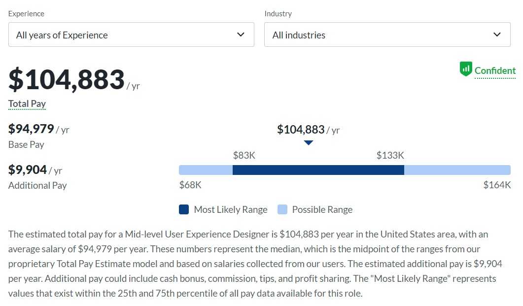 Эта цифра действительно впечатляет! Очень редко можно увидеть такую высокую зарплату для начинающих! Честно говоря, это просто говорит о том, что работа дизайнера UX нелегка, и что нужно много учиться.