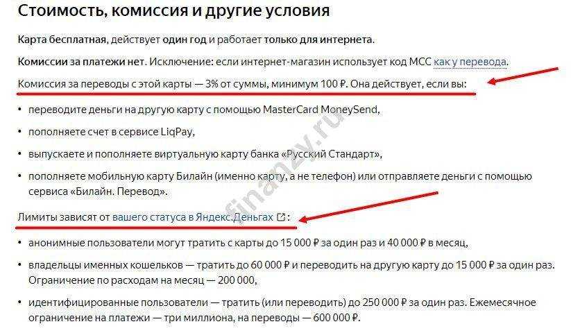 В этом случае комиссия за перевод будет составлять 1%. Кроме того, Яндексом установлены ограничения на переводы с банковских карт.
