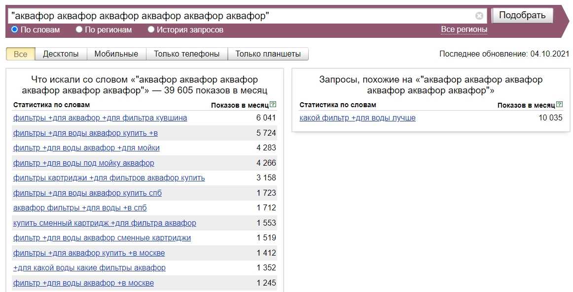 Яндекс.Вордстат тоже подсказывает запросы с брендом. Чтобы получить запросы с длинными хвостами, повторите исходное слово несколько раз и возьмите все в кавычки: