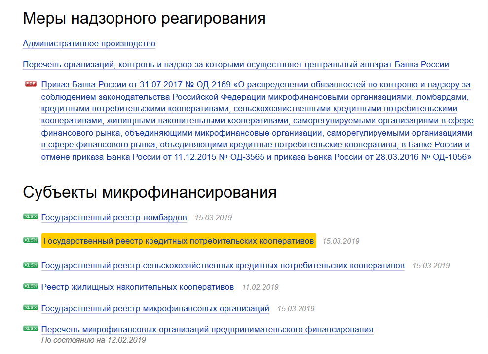 Посмотреть список действующих кредитных потребительских кооперативов вы можете на официальном сайте ЦБ РФ по адресу: