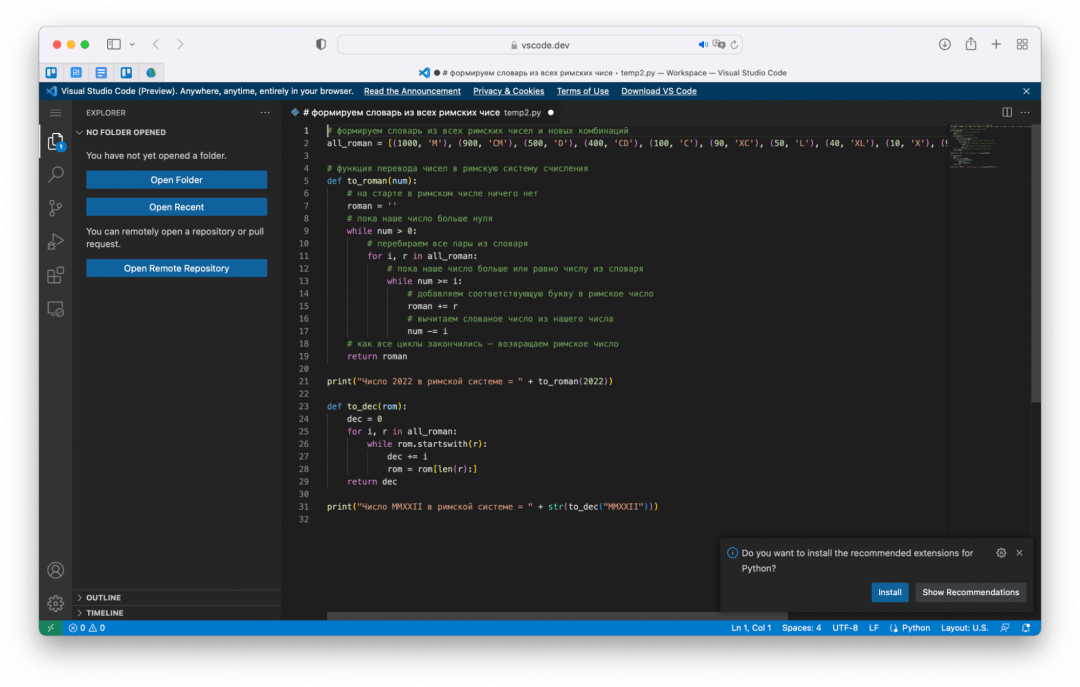 Даже у редактора кода VS Code есть веб-версия, которая умеет делать почти всё то же самое, что и десктопное приложение