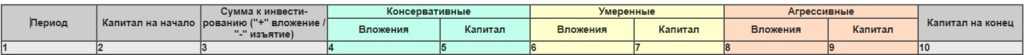 В таблице, приведённой ниже, мы рассмотрим непосредственно стратегию инвестирования, её влияние на достижения целей семьи.