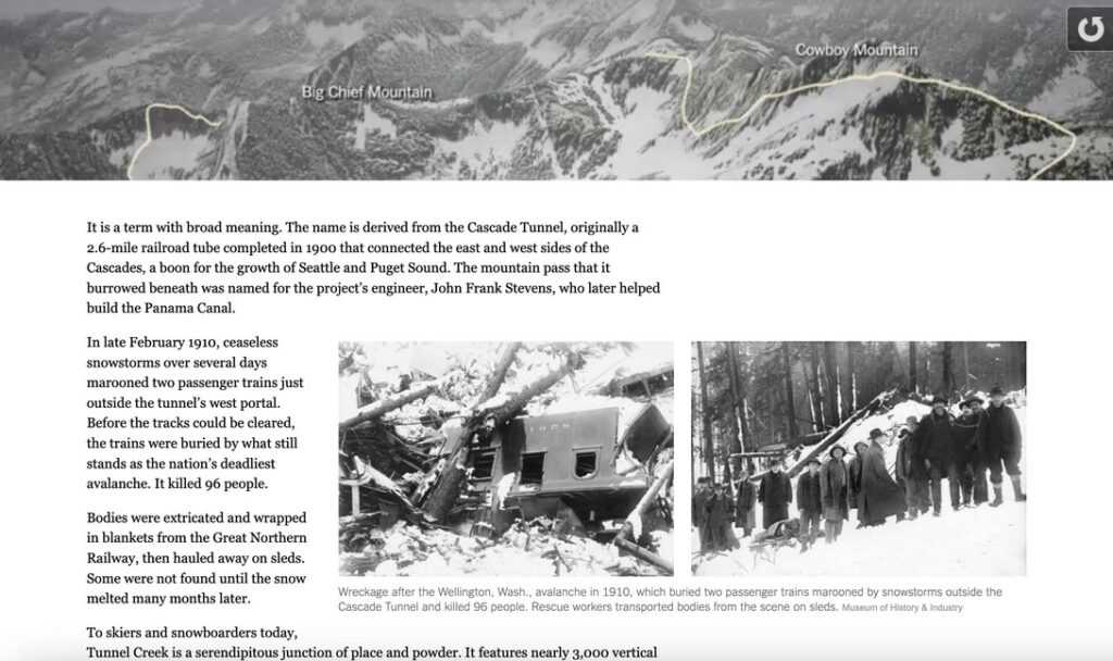 Лонгрид NY Times о трагедии с альпинистами на перевале Стивенс считается первым и эталонным образцом формата
