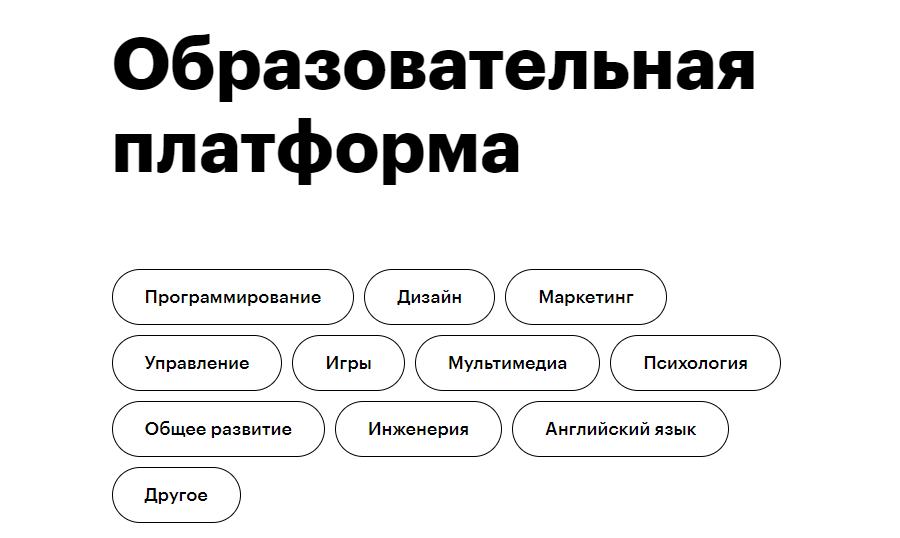 На ресурсе образовательные программы для детей и школьников вынесены в отдельный раздел. Около восьми разноплановых курсов рассортированы по подкаталогам двух типов. Позиции первого имеют направленность, напрямую связанную со школьной программой: математика, русский язык, химия, физика. Курсы второго типа — это возможность подтянуть знания по иностранным языкам и подготовиться к экзаменам. Ко всем программам предлагают бесплатный пробный урок.