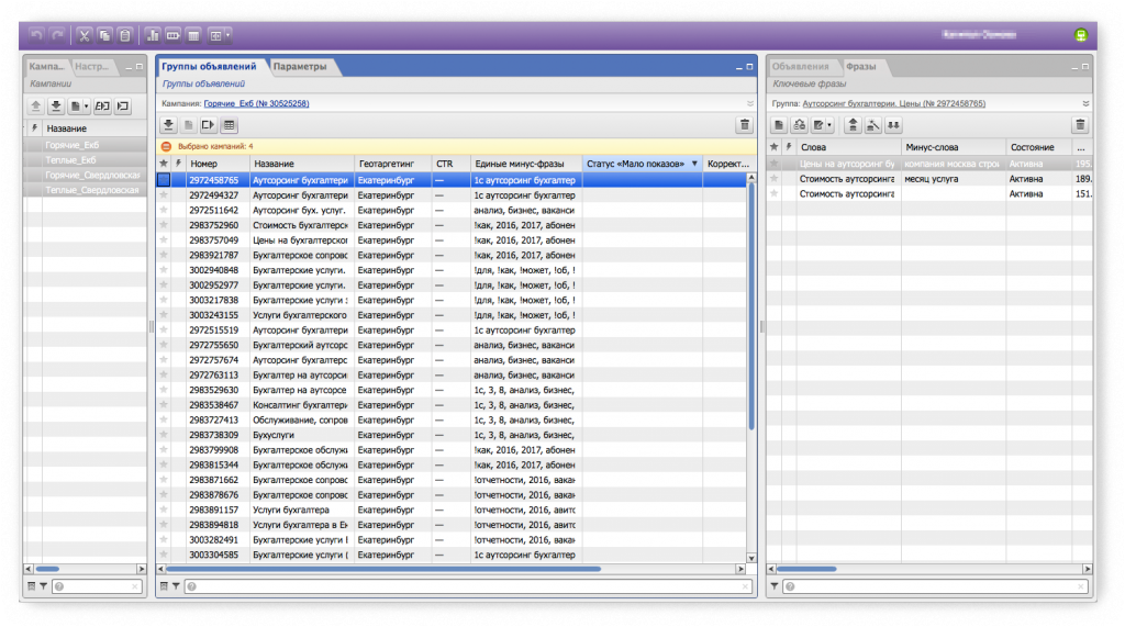 - Система исключает пересечение ключевых слов в одной или нескольких кампаниях.