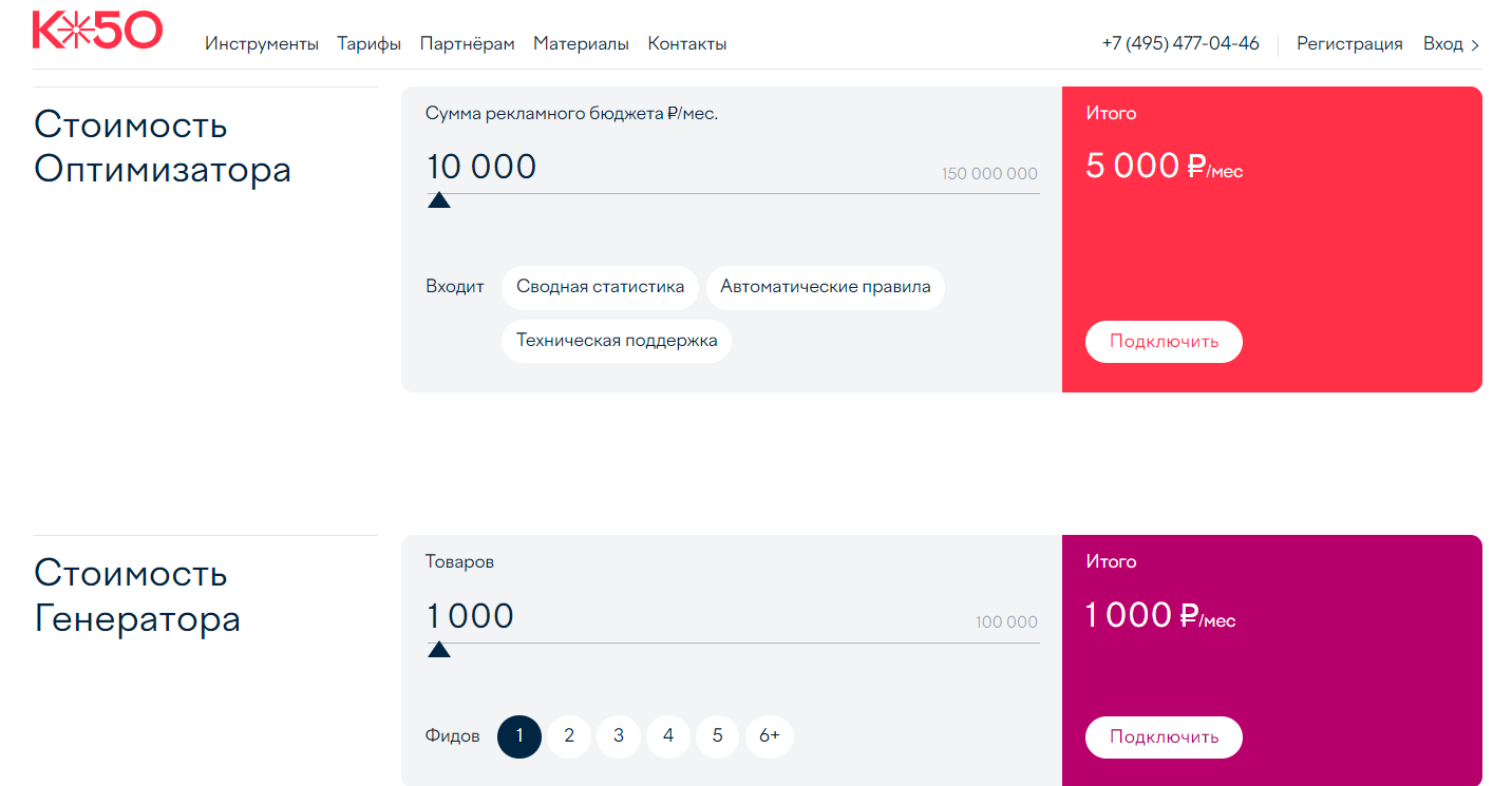 По окончании этого срока все инструменты сервиса платные. За каждый инструмент пользователь платит отдельно. Например, стоимость оптимизатора РК – от 5000 рублей в месяц, генератора – от 1000 рублей в месяц.