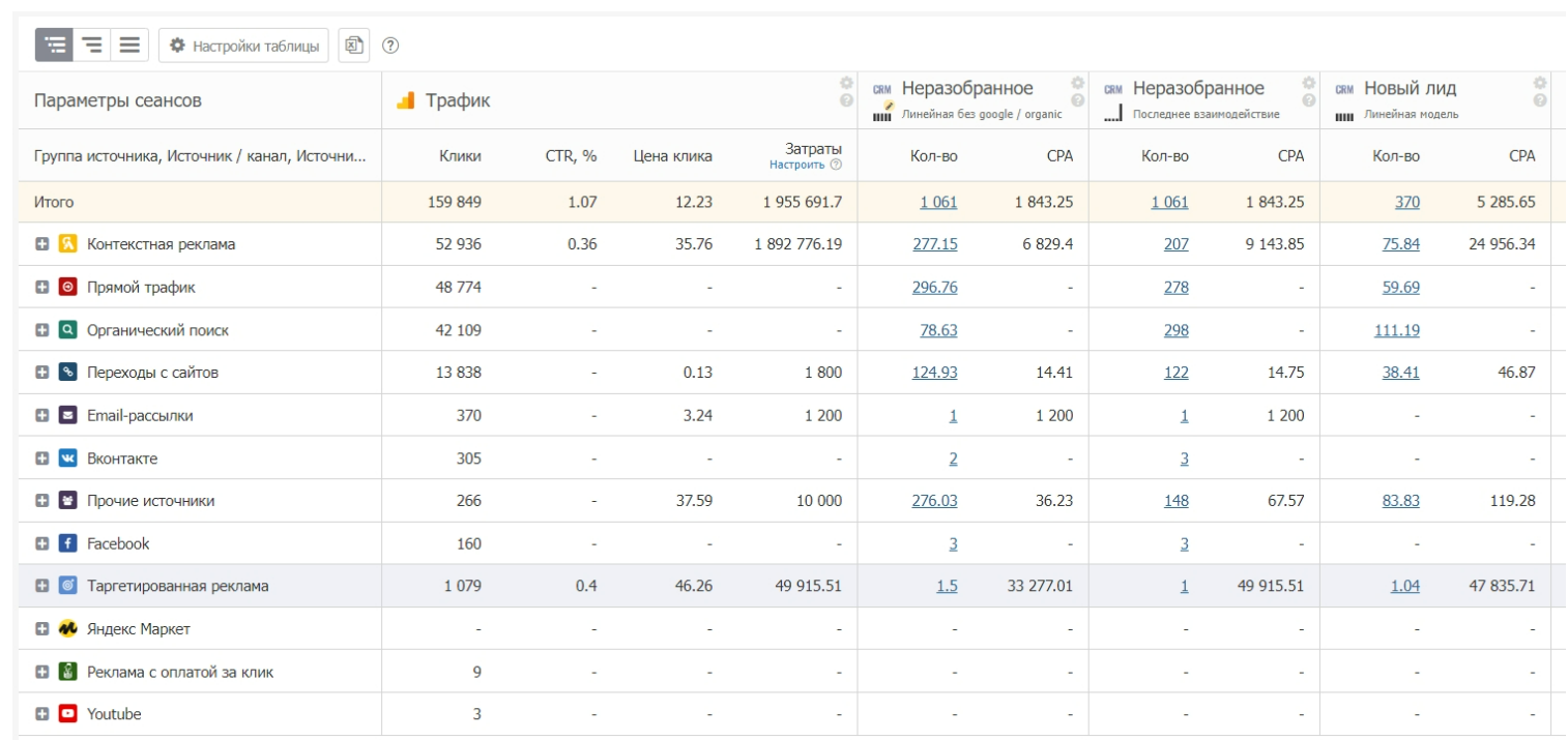 - учета всех расходов на любые маркетинговые каналы, в том числе и оффлайн-каналы;