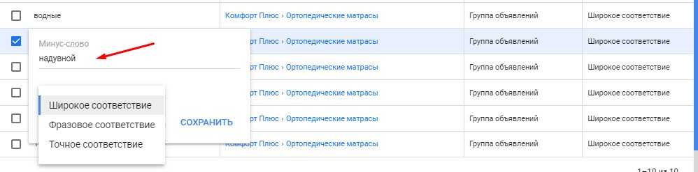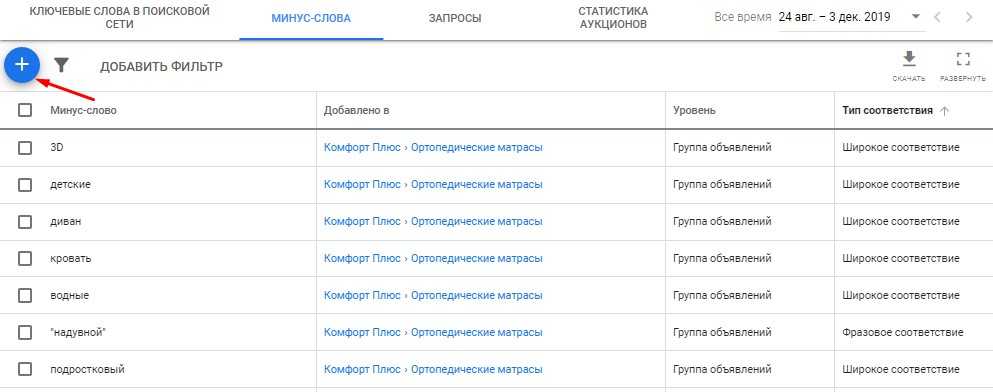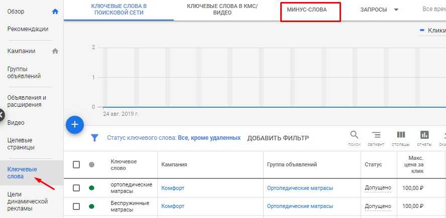 Минус-слова в Google Ads