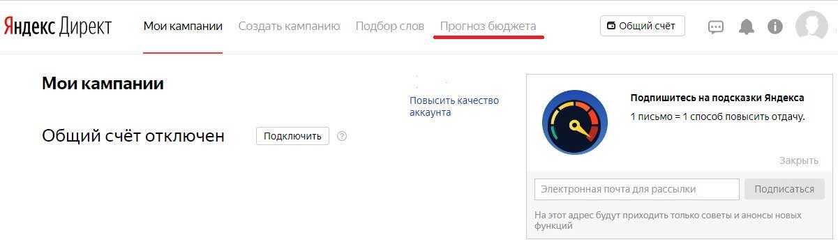 Скриншот 6 – ссылка на прогноз бюджета в Яндекс.Директ