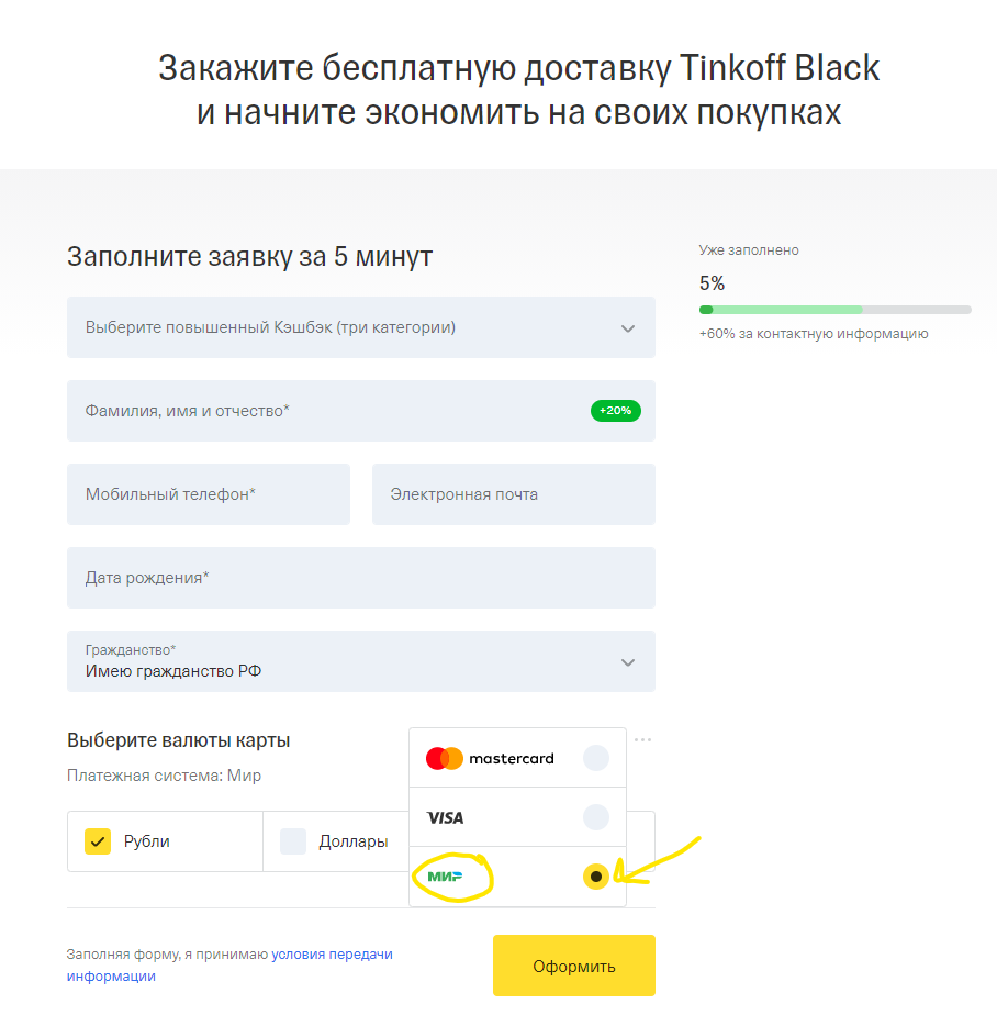 Как пенсионеру правильно оформить дебетовую банковскую карту Тинькофф Блэк